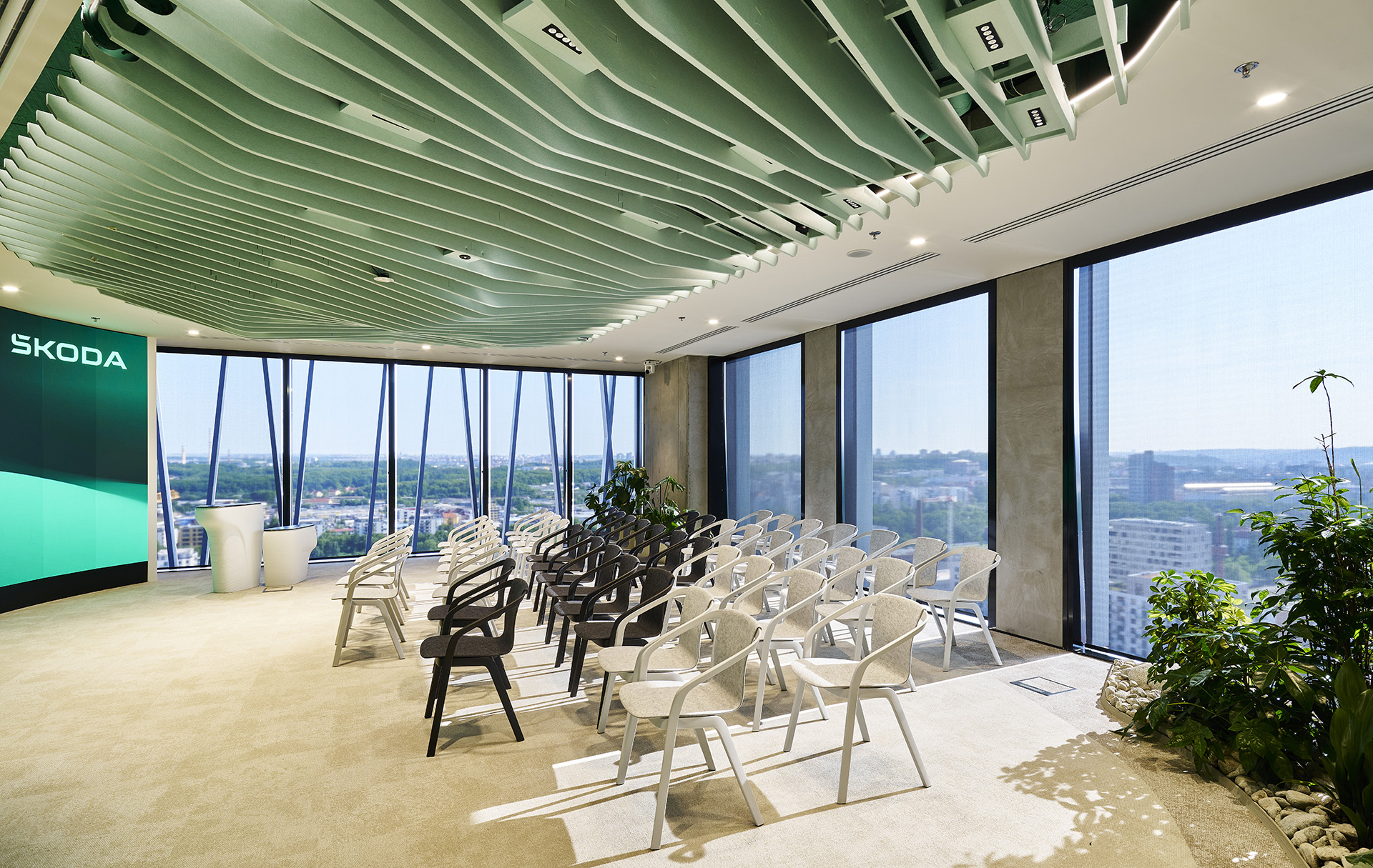 Uspořádejte nezapomenutelnou událost v prostorách, které inspirují, podporují kreativitu a usnadňují spolupráci. Eventové prostory udržitelných multifunkčních kanceláří společnosti Škoda Auto nabízí profesionální zázemí pro každou příležitost, ať už plánujete tiskovou konferenci, mezinárodní setkání, workshop, brainstormingové sezení nebo neformální schůzku.