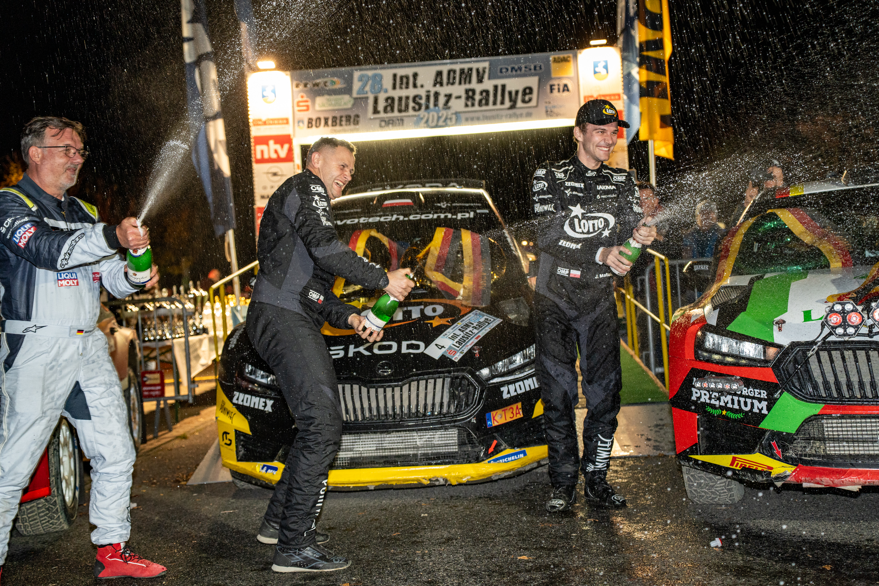 Hinter Matulka kämpften die beiden deutschen Rallye-Legenden Matthias Kahle und Armin Kremer in ihren Škoda Fabia RS Rally2 um Rang zwei. Lokalmatador Kahle und Beifahrer Christian Doerr hatten am Ende die Nase vorn. „Wir hatten vorher realistisch mit Rang fünf gerechnet“, sagte Kahle. „Mit dem zweiten Platz haben wir unser Soll deutlich übererfüllt. Es ist schön, so einen Erfolg in meiner Heimat feiern zu können. Die Lausitz ist ein Saison-Highlight, es gibt kaum einen Lauf mit so vielen Teilnehmern und Zuschauern“, ergänzte der siebenmalige Deutsche Rallye-Meister.