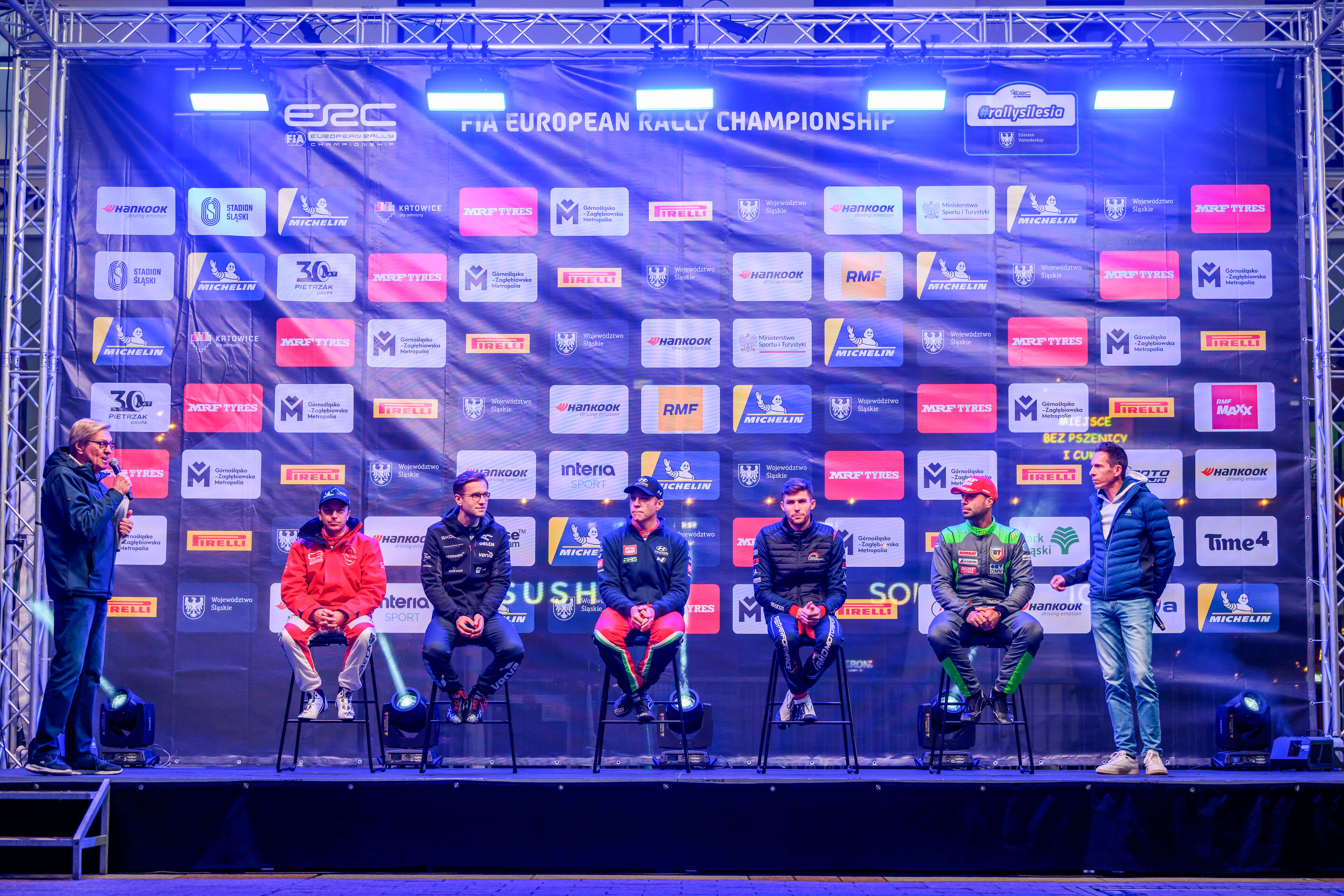 Simone Tempestini, Miko Marczyk, Mathieu FRANCESCHI, Hayden PADDON & Yoann BONATO at the FIA European Rally Championship in Katowice, Poland on 11, October 2024 // @World / Red Bull Content Pool // SI202410110537 // Usage for editorial use only //