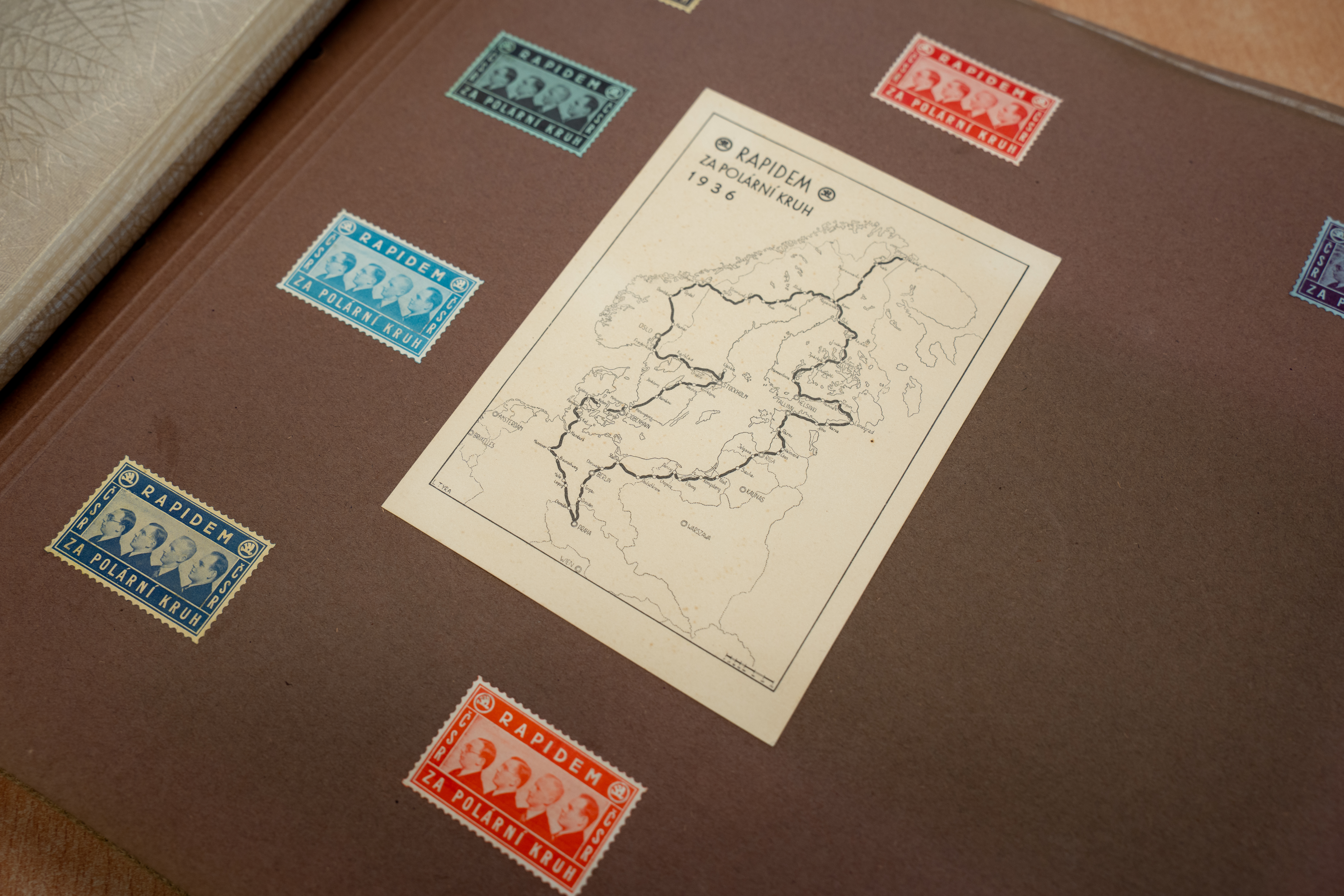 Vďaka priloženej štartovacej listine vieme, že vozidlu Škoda Rapid bolo pridelené štartovacie číslo 43 z celkového počtu 154 automobilov. Štartovacie číslo sa skvie na doskách albumu v podobe nálepky. A nie je samo. Samotné dosky albumu slúžia ako mapa miest, kde všade sa naši dobrodruhovia ubytovali. V hoteloch si brali cestovateľské suveníry v podobe nálepiek a po návrate ich starostlivo na dosky nalepili.