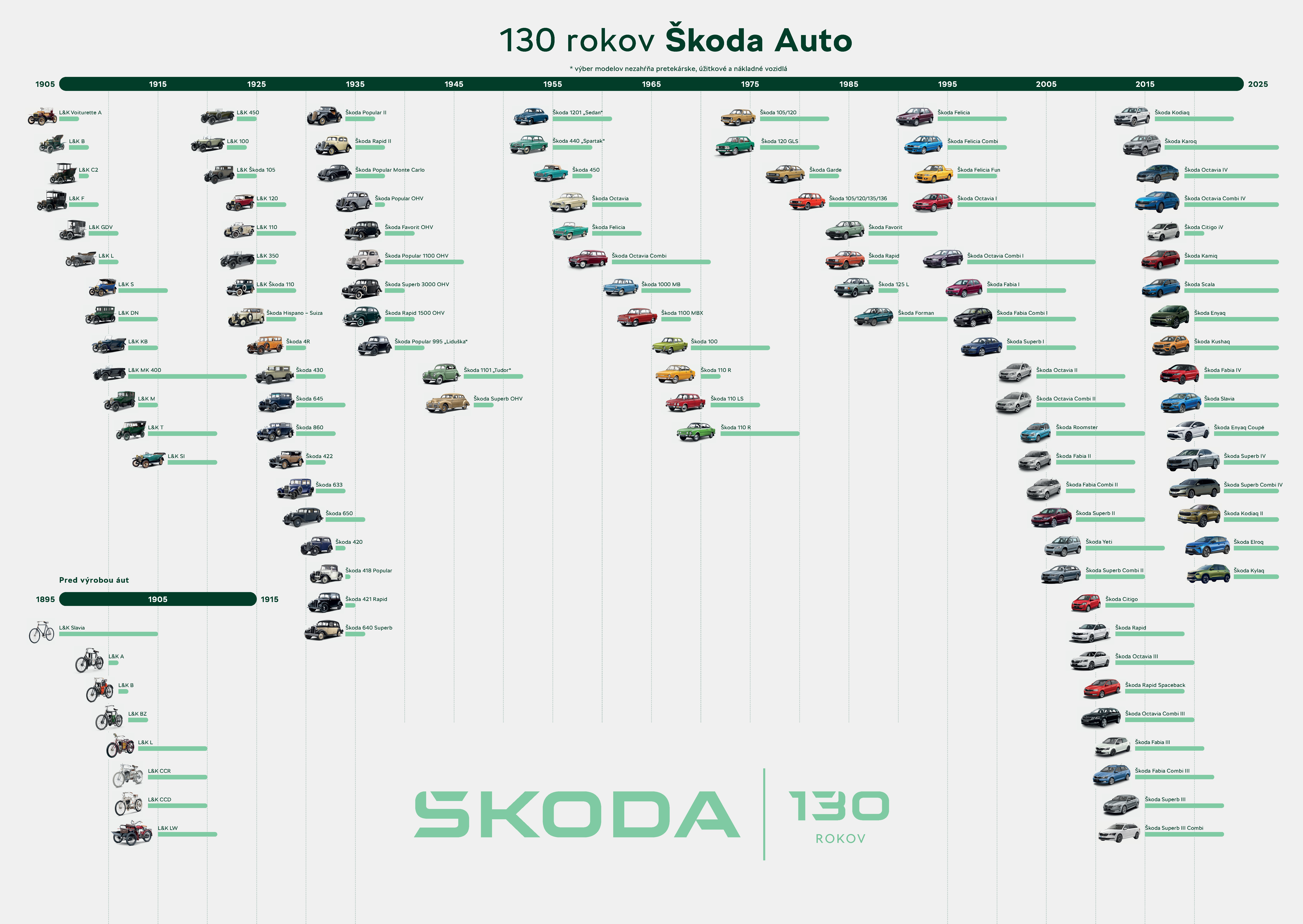 V roku 2009 vstúpila Škoda s vozidlom Yeti do kategórie SUV, o deväť rokov neskôr oslávila v tejto kategórii prvý milión, v roku 2025 už bolo SUV so značkou Škoda štyri milióny. Rok 2012 priniesol ďalší míľnik: 14 miliónov vozidiel, z toho 9 miliónov po spojení s VW. Na začiatku roku 2025 už výroba predstavovala viac než 27 miliónov vozidiel.